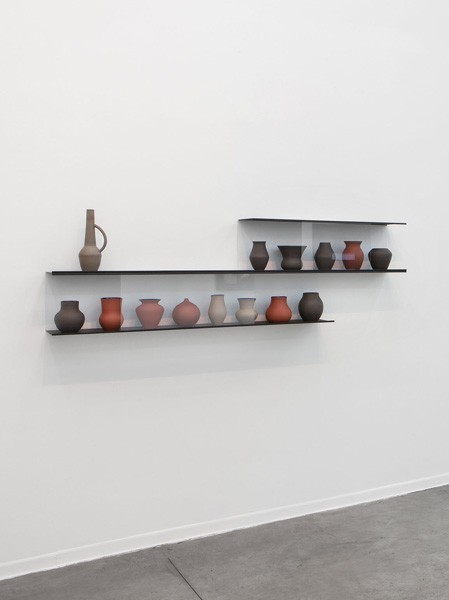 Clay steel shelves glass and paint